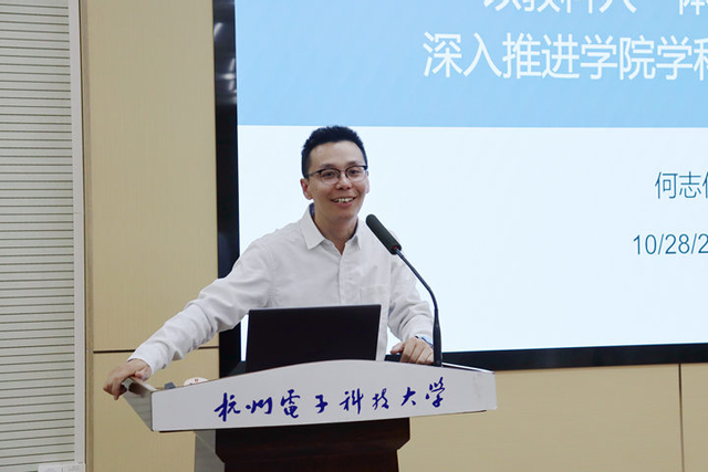 电子信息学院院长何志伟作《以教科人一体化为抓手,深入推进学院学科高质量发展》专题报告。报告结合暑期干部培训,从客观所学、感悟体会、启发思考、实践规划四方面,分享了围绕“教科人一体化”主题的研修成果。