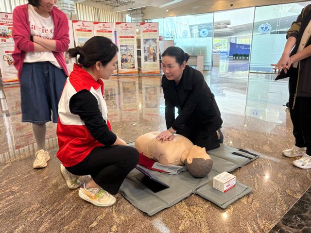 本期活动以急救知识为专题,特邀校医院急救培训师邢海燕,培训内容兼具专业性与实用性,涵盖心肺复苏(CPR)操作、自动体外除颤器(AED)使用等核心知识点。医师通过理论讲解、案例分析、现场演示等方式,详细拆解急救操作的关键步骤,重点强调“黄金急救4分钟”的重要性。在实操环节,教职工们分组上前,在医师的指导下使用模拟人进行心肺复苏练习,逐一纠正动作偏差,确保掌握规范的急救技能。