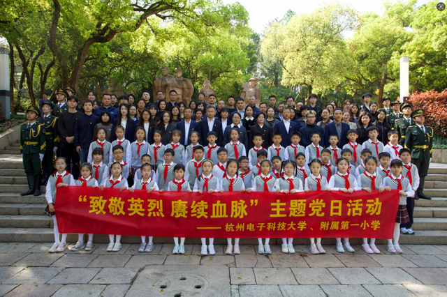 松柏含翠,丰碑巍然。4月2日上午,杭州电子科技大学党委组织部、机关党委、马克思主义学院党委、杭电附属第一小学联合组织开展“致敬英烈 赓续血脉”主题党日活动。杭州电子科技大学党委副书记钱波,纪委书记任蔚青,校党委委员、组织部部长、机关党委书记孔万增,杭电附属一小党总支书记董夫奏、副校长潘军出席了活动,机关党员代表、马克思主义学院师生党员代表、附属小学师生共100余人参加了活动,在沉浸式党史学习教育中砥砺初心使命,以革命精神为引领,为学校“十五五”规划开局起步凝聚思想共识、注入奋进力量。活动由党委组织部副部长曹春主持。